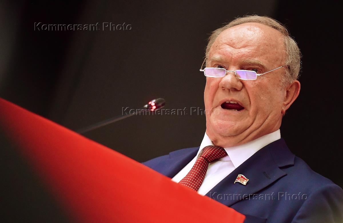 Pre-election congress of the Communist Party of the Russian Federation (KPRF) at the Snegiri health complex. Gennady Zyuganov, leader of the Communist Party of the Russian Federation, member of the Russian State Duma Committee for the Commonwealth of Independent States, Eurasian Integration and Relations with Compatriots, speaking at the congress.