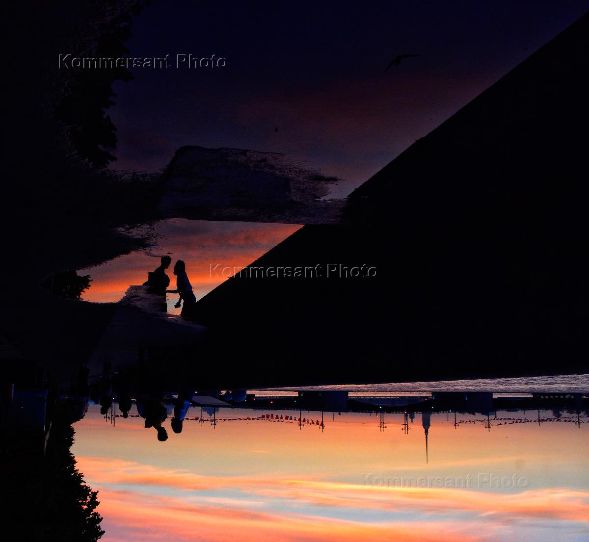 Views of St. Petersburg. Genre photography. Sunset over the Neva.