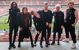 Онлайн-концерт "Сверим сердца" группы "Би-2" на Большой арене спортивного комплекса "Лужники". Слева направо участники группы "Би-2": Борис Лифшиц, Шура (Александр Уман), Лева (Егор Бортник), Ян Николаев, Андрей Звонков и Максим Андрющенко перед началом съемок концерта.