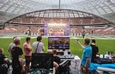 Онлайн-концерт "Сверим сердца" группы "Би-2" на Большой арене спортивного комплекса "Лужники". Участники съемочной группы во время съемок концерта.