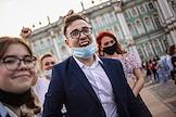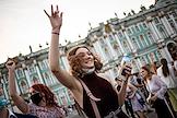 Праздник выпускников школ "Алые паруса". Выпускники на Дворцовой площади во время праздника.
