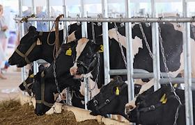 Форум "Агроволга 2021" на территории международного выставочного центра (МВЦ) Kazan Expo. Коровы в загоне.