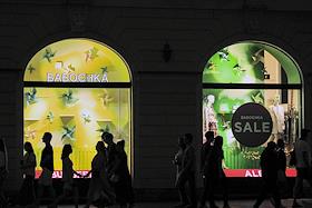 Виды вечернего Санкт-Петербурга. Жанровая фотография. Витрина магазина на Невсоком просспекте.
