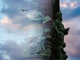 Виды Санкт-Петербурга. Мультиэкспозиция. Фасад Елисеевского магазина с аллегорическими фигурами скульптора А.Г.Адамсона. Невский проспект. Жанровая фотография.