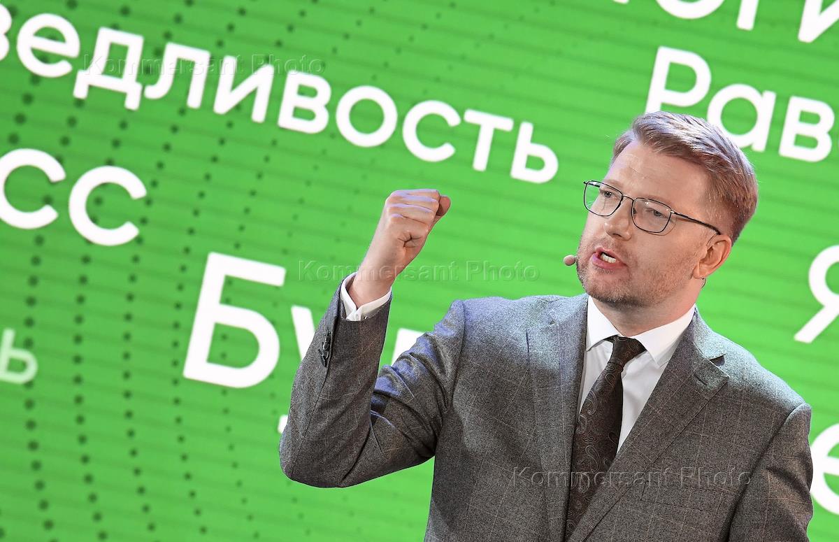 Pre-election congress of the Yabloko party in the Mercury tower of the Moscow International Business Center (MIBC) Moscow City. Deputy Chairman of the Moscow Regional Branch of the Yabloko Party Kirill Goncharov at the congress.