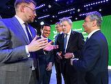 Pre-election congress of the Yabloko party in the Mercury tower of the Moscow International Business Center (MIBC) Moscow City. Co-chairman of the Moscow Helsinki Group, co-chairman of the human rights faction of the Yabloko party Valery Borshchev (center) during the congress.