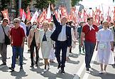 Акция "Я люблю Молдову", организованная избирательным блоком коммунистов и социалистов, на площади перед академией наук Молдовы. Председатель Партии социалистов Молдавии Игорь Додон (в центре) во время акции.