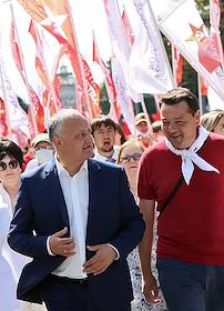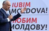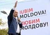 Акция "Я люблю Молдову", организованная избирательным блоком коммунистов и социалистов, на площади перед академией наук Молдовы. Председатель Партии социалистов Молдавии Игорь Додон (слева) во время акции.