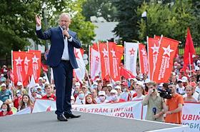 Акция "Я люблю Молдову", организованная избирательным блоком коммунистов и социалистов, на площади перед академией наук Молдовы. Председатель Партии социалистов Молдавии Игорь Додон во время акции.