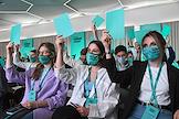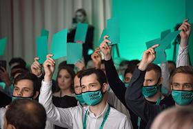 Съезд партии "Новые люди" в конференц-зале Grand Ballroom. Делегаты съезда во время голосования.