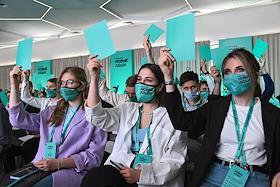 Съезд партии "Новые люди" в конференц-зале Grand Ballroom. Делегаты во время голосования на съезде.