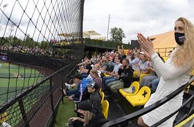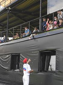 Спецпроект "Бейсболисты в Москве". Чемпионат Европы по бейсболу - 2021. Финал групповых отборочных игры. Матч между сборными Белоруссии и России на стадионе Russtar Arena (Русстар Арена). Зрители во время матча.