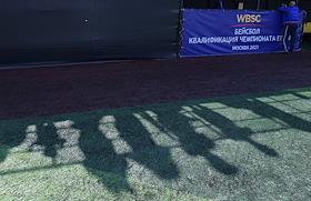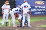 Спецпроект "Бейсболисты в Москве". Чемпионат Европы по бейсболу - 2021. Финал групповых отборочных игры. Матч между сборными Белоруссии и России на стадионе Russtar Arena (Русстар Арена). Игроки сборной России во время матча.
