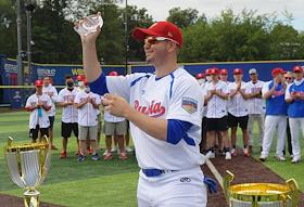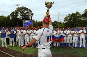 Спецпроект "Бейсболисты в Москве". Чемпионат Европы по бейсболу - 2021. Финал групповых отборочных игры. Матч между сборными Белоруссии и России на стадионе Russtar Arena (Русстар Арена). Игрок сборной России после окончания матча.