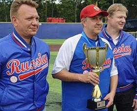 Спецпроект "Бейсболисты в Москве". Чемпионат Европы по бейсболу - 2021. Финал групповых отборочных игры. Матч между сборными Белоруссии и России на стадионе Russtar Arena (Русстар Арена). Президент Ассоциации бейсбола Москвы Богдан Стрельченко после окончания матча.