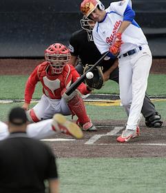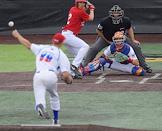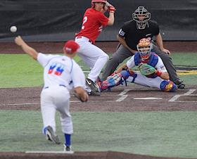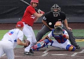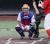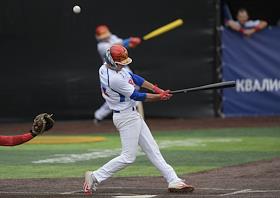 Спецпроект "Бейсболисты в Москве". Чемпионат Европы по бейсболу - 2021. Финал групповых отборочных игры. Матч между сборными Белоруссии и России на стадионе Russtar Arena (Русстар Арена). Игрок сборной России Андрей Лобанов во время матча.