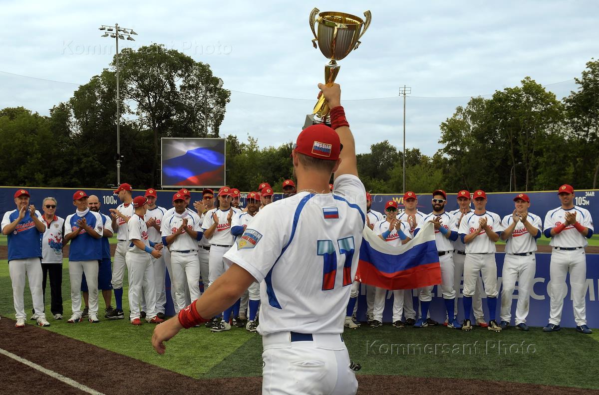 Спецпроект "Бейсболисты в Москве". Чемпионат Европы по бейсболу - 2021. Финал групповых отборочных игры. Матч между сборными Белоруссии и России на стадионе Russtar Arena (Русстар Арена). Игроки сборной России после окончания матча.