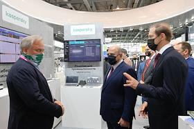 Рабочая поездка председателя России Михаила Мишустина в Екатеринбург. Председатель правительства России Михаил Мишустин (справа) во время посещения стенда компании KUKA на Международной промышленной выставки "Иннопром-2021".