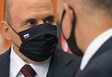 Рабочая поездка председателя России Михаила Мишустина в Екатеринбург. Председатель правительства России Михаил Мишустин (в центре) и министр промышленности и торговли России Денис Мантуров (четвертый слева) во время посещения Национаонального павильона Италии на Международной промышленной выставки "Иннопром-2021".