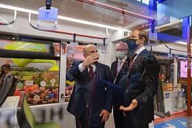 Рабочая поездка председателя России Михаила Мишустина в Екатеринбург. Председатель правительства России Михаил Мишустин (слева) и министр промышленности и торговли России Денис Мантуров (справа) во время посещения стенда ООО "ПК "Транспортные системы" на Международной промышленной выставки "Иннопром-2021".