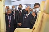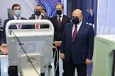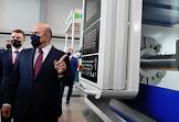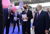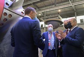 Рабочая поездка председателя России Михаила Мишустина в Екатеринбург. Председатель правительства России Михаил Мишустин (в центре) во время посещения стенда ОАО "Концерн ПВО "Алмаз – Антей" на Международной промышленной выставки "Иннопром-2021".