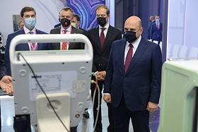 Рабочая поездка председателя России Михаила Мишустина в Екатеринбург. Председатель правительства России Михаил Мишустин (слева) во время посещения Международной промышленной выставки "Иннопром-2021".