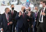 Рабочая поездка председателя России Михаила Мишустина в Екатеринбург. Председатель правительства России Михаил Мишустин (в центре) и генеральный директор ОАО "Уральский завод гражданской авиации" (входит в холдинг "Оборонпром" ГК "Ростехнологии") Вадим Бадеха (второй справа) во время посещения Уральского завода гражданской авиации (УЗГА).
