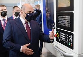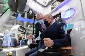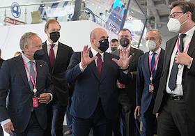 Рабочая поездка председателя России Михаила Мишустина в Екатеринбург. Председатель правительства России Михаил Мишустин (справа) во время посещения Международной промышленной выставки "Иннопром-2021".