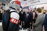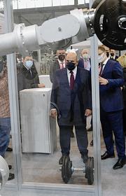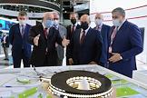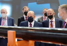Рабочая поездка председателя России Михаила Мишустина в Екатеринбург. Председатель правительства России Михаил Мишустин (в центре) во время посещения Международной промышленной выставки "Иннопром-2021".
