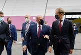 Рабочая поездка председателя России Михаила Мишустина в Екатеринбург. Председатель правительства России Михаил Мишустин (третий слева) во время посещения Национаонального павильона Италии на Международной промышленной выставки "Иннопром-2021".