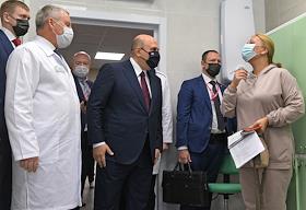 Рабочая поездка председателя России Михаила Мишустина в Екатеринбург. Председатель правительства России Михаил Мишустин (в центре) во время посещения поликлиники №1 Центральной городской клинической больницы №1.