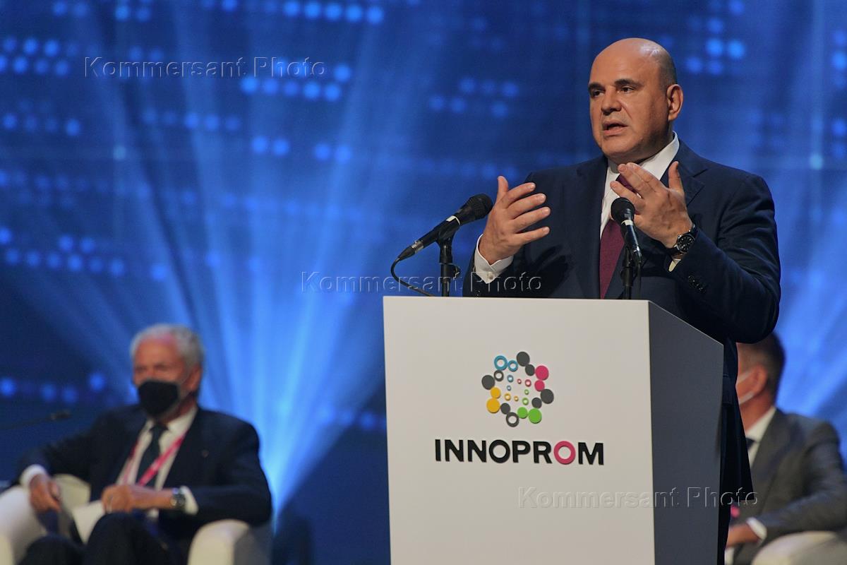 Рабочая поездка председателя России Михаила Мишустина в Екатеринбург. Председатель правительства России Михаил Мишустин во время выступления на главной стратегической сессии "Гибкое производство: максимальная адаптация" в рамках Международной промышленной выставки "Иннопром-2021".