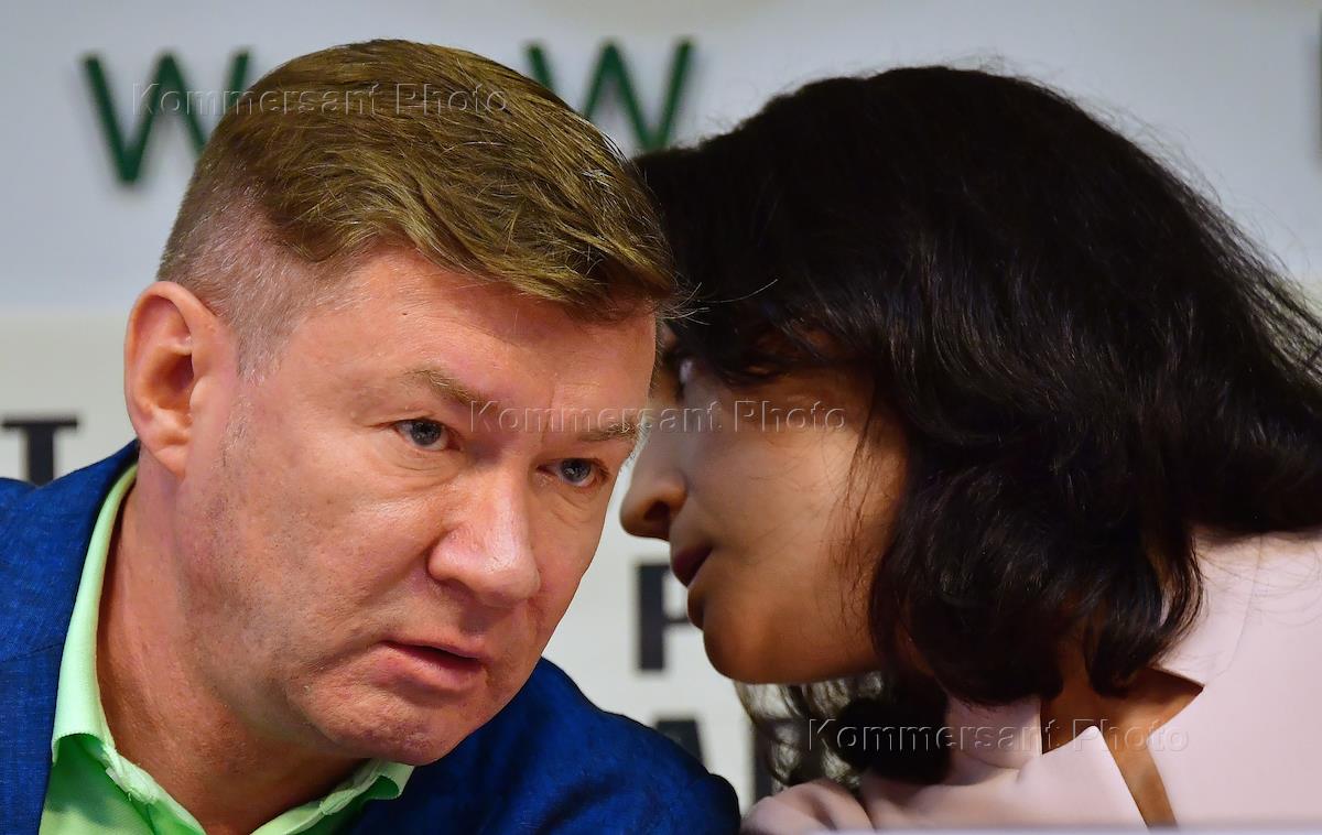 Пресс-конференция российской экологической партии "Зеленые" в пресс-центре "Росбалт". Заместитель председателя Общественного Совета при Росприроднадзоре, председатель правления общероссийской общественной организации "Зелёный Патруль" Андрей Нагибин (слева) и исполнительный директор Фонда рационального природопользования Александр Кудзагова (справа) во время пресс-конференции.