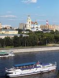 Виды Москвы. Жанровая фотография. Покровская церковь и прогулочный теплоход возле Космодамианской набережной.