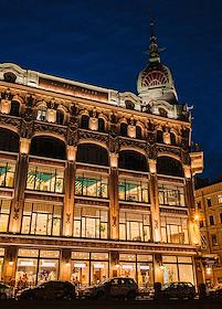 Виды Санкт-Петербурга. Жанровая фотография. Дом Зингера на Невском проспекте в вечерней подсветке.
