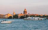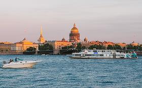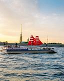 Виды Санкт-Петербурга. Жанровая фотография. Прогулочные теплоходы во время речной прогулки по реке Неве.