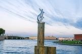 Виды Санкт-Петербурга. Жанровая фотография. Скульптура зайца - символ Заячьего острова - на деревянной свае возле опоры Иоанновского моста.