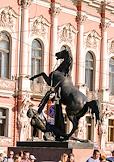 Виды Санкт-Петербурга. Жанровая фотография. Фрагмент скульптурной группы "Укрощение коня человеком" на Аничковом мосту.