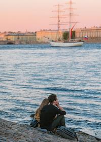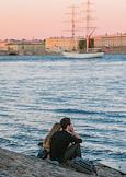 Виды Санкт-Петербурга. Жанровая фотография. Молодые люди на берегу реки Невы.