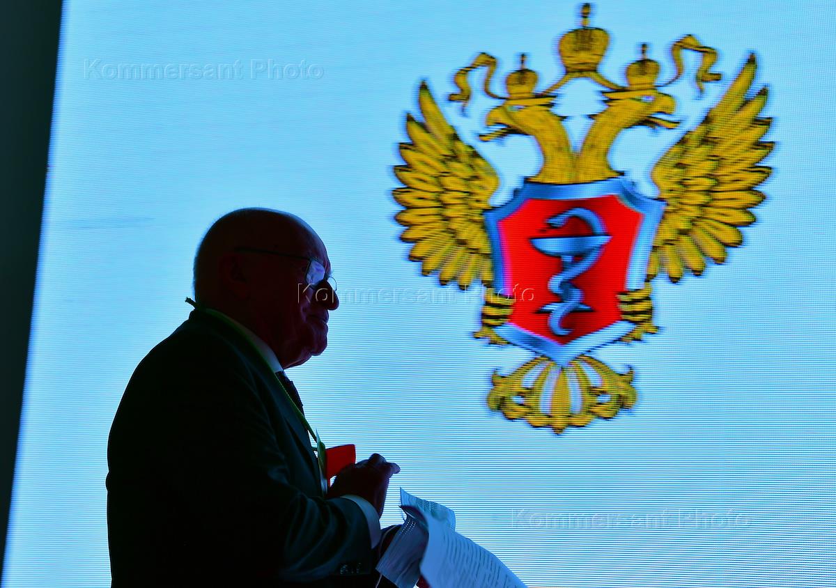 Торжественная церемония открытия Всероссийского форума "Здоровье нации - основа процветания России" в ЦВЗ "Манеж". Руководитель Федеральной службы по надзору в сфере здравоохранения Алла Самойлова во время выступления на церемонии. .