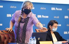 Заседание Центральной избирательной комиссии (ЦИК) России. Председатель ЦИК России Элла Памфилова (в центре) во время заседания.