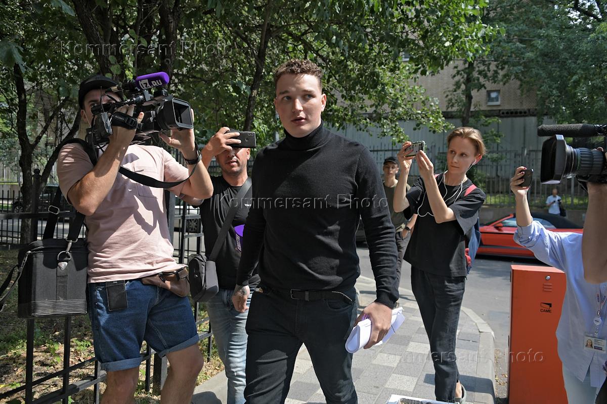 Рассмотрение дела блогера Эдварда Била (Эдуарда Биля), спровоцировавшего массовое ДТП на Смоленской площади в центре Москвы, в Пресненском суде. Блогер Эдвард Бил (слева) перед началом заседания суда.