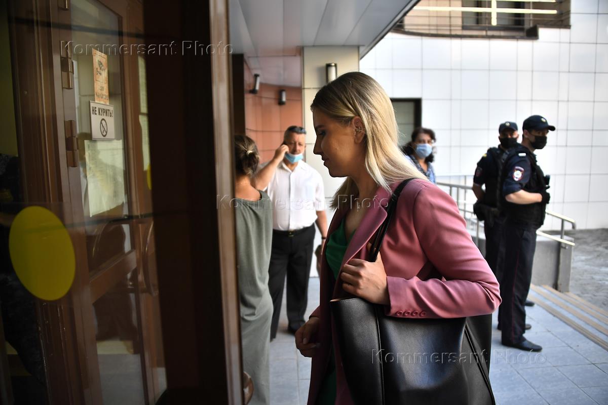 Бывший юрист Фонда борьбы с коррупцией (ФБН) Любовь Соболь (в центре), обвиняемая в подстрекательстве к нарушению санитарных норм на акции 23 января 2021года, перед началом заседания Преображенского районного суда.
