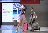 Церемония открытия нового пассажирского терминала "Аэроэкспресс" в международном аэропорте "Домодедово" имени М.В. Ломоносова. Пассажиры во время регистрации на рейс.