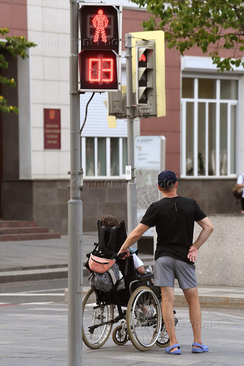 Пикет с участием пациентов, страдающих спинально-мышечной атрофией (СМА), в поддержку проблемы получения необходимого лекарства для жизни у взрослых пациентов со СМА, у здания Министерства здравоохранения России. Пациент хосписа "Дом с Маяком" 19-летний Даниил Максимов (справа), страдающий СМА, во время пикета.