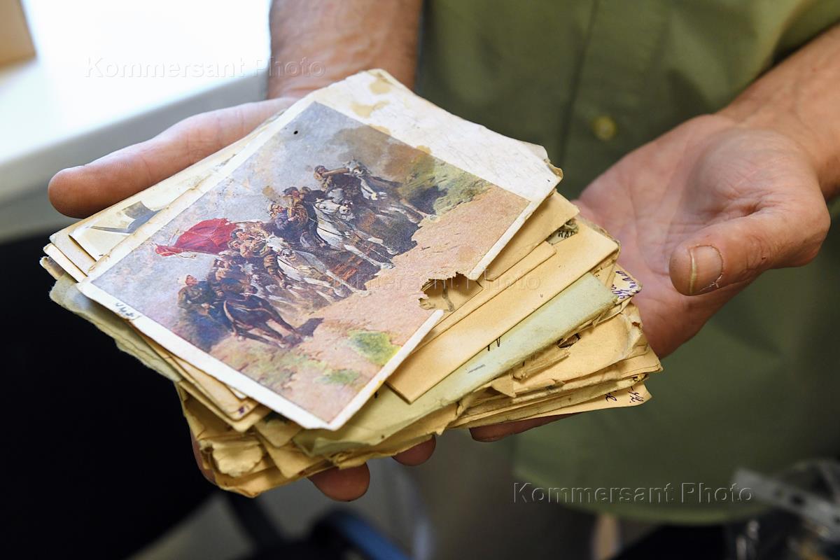 Письма и фотографии архива центра "Холокост. Сотрудник Архивного отдела Научно-просветительного центра "Холокост" Леонид Тёрушкин в архиве.