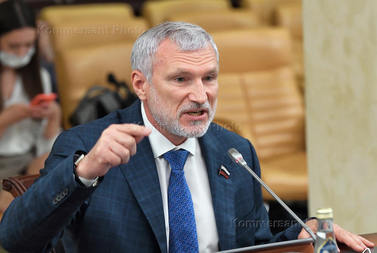 Церемония подписания соглашения между Общественной палатой России и российскими политическими партиями в целях обеспечения наблюдения за проведением голосования на выборах депутатов Государственной думы в Общественной палате России (ОПР). Председатель политической партии "Родина" Алексей Журавлев во время церемонии.