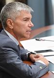 Церемония подписания соглашения между Общественной палатой России и российскими политическими партиями в целях обеспечения наблюдения за проведением голосования на выборах депутатов Государственной думы в Общественной палате России. Заместитель председателя всероссийской политической партии "Партия роста" Сергей Демин во время церемонии.