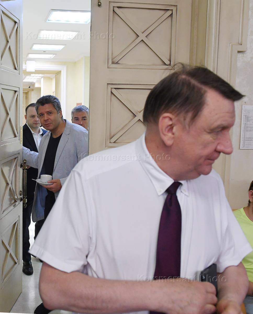 Церемония подписания соглашения между Общественной палатой России и российскими политическими партиями в целях обеспечения наблюдения за проведением голосования на выборах депутатов Государственной думы в Общественной палате России (ОПР). Председатель политической партии "Родина" Алексей Журавлев (в центре) и член Бюро Президиума Политического совета партии "Родина" Марина Костычева (слева) перед началом церемонии.
