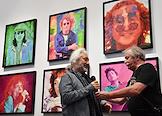 Церемония открытия мультижанровой выставки художника, музыканта и продюсера, лидера группы "Цветы" Стаса Намина в Московском музее современного искусства (MMOMA). Композитор, музыкальный продюсер Стас Намин (слева) и художник Константин Худяков (справа) на церемонии.